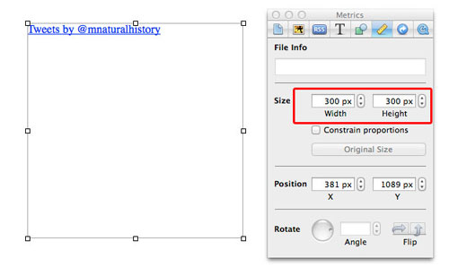 You must change its width & height of the HTML snippet box from the 'Metrics' tab of the inspector window.