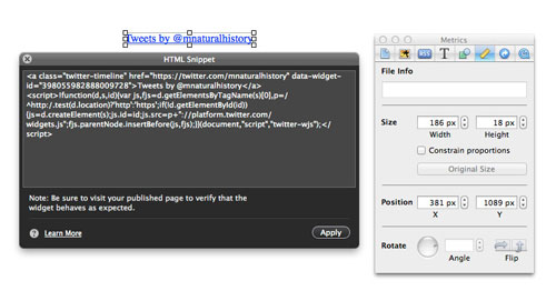 I really love to have conversation on Twitter. For the purpose of your business, you can make use of twitter to let your target market or customers know what's new about your business instead of RSS feed. I use both of them. (actually, I use RSS feed, Twitter, and facebook all.) You can also embed your live stream of Twitter into iWeb. This widget works great if you want people to notice Hot news or Recent topic...something like that. Through this widget, let people have conversation with you via your website.
