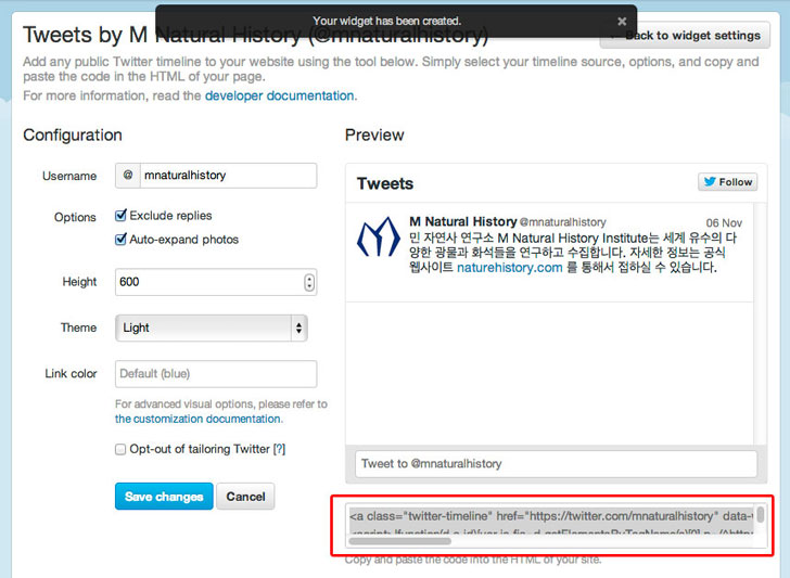 Customize your widget's styles, and then push 'Create widget' button on the bottom. (You should set the height.)