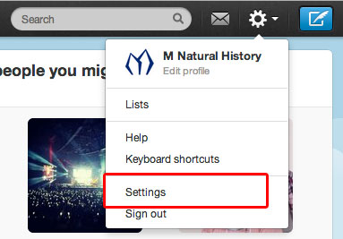 Once you have signed in Twitter, please click 'Settings' on the top right.